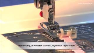 Ten model stopki idealny jest do naszywania elementów dekoracyjnych, np. ozdobnych tasiemek, cekinów a także do wszywania gumek czy silikonu w taśmie. Dzięki zastosowanemu prowadnikowi efekt końcowy będzie estetyczny. Prowadnik przystosowany jest do tasiemki o max. szerokości 7 mm, jednakże mogą być też węższe.