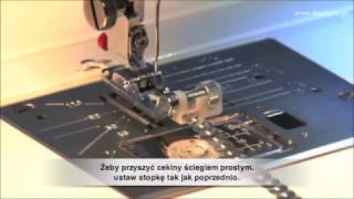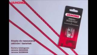 Zastosowanie stopki do naszywania cekinów i tasiemek JANOME pokazane jest w filmikach znajdujących się powyżej, pod zdjęciem: